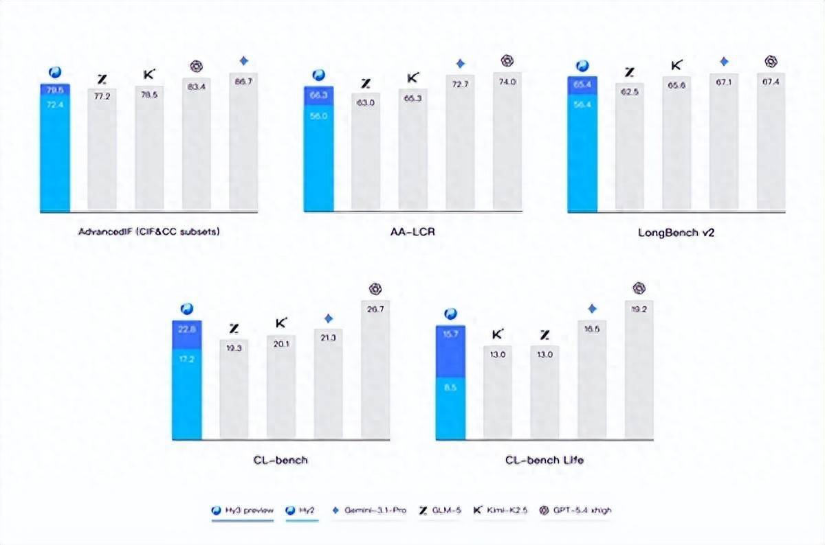 在各种真实的生产与生活场景,理解杂乱冗长的上下文并遵从复杂多变的规则是模型的首要挑战。基于腾讯业务场景的灵感,腾讯混元提出了CL-bench和CL-bench-Life来创新性地评估模型的上下文学习能力,并在Hy3 preview显著地提升了模型上下文学习和指令遵循能力。