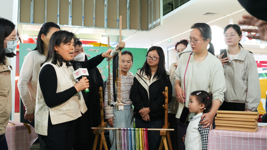 一系列互动体验活动更是点燃了居民的热情。苏绣艺术家梁雪芳在金谊广场开起了苏绣课堂,手把手教居民用传统针法绣制上海市花白玉兰。零基础的阿姨、孩子们一针一线间,完成了属于自己的苏绣团扇。另一边,“闪摄”社区摄影工作坊则把移动影棚搬进了社区,专业摄影师现场指导居民拍摄非遗人像,照片即拍即印,不少居民拿着刚出炉的照片乐得合不拢嘴。佳能摄影大篷车也开进现场,上海市摄影家协会理事聂伟国带来了一场干货满满的非遗摄影讲座。