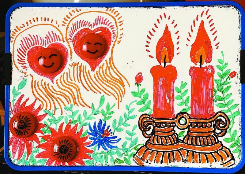 一方白色写字板、四色水笔与四颗红磁石,是赵丽宏为母亲作画的工具。在母亲生命的最后一年,他用随画随擦的写字板为母亲画了六七十幅画。那时,母亲已经失语。一次灵光一闪,他找到向母亲倾诉、和母亲交流的方法,就是每次去看望母亲,坐在母亲的床边,在写字板上为她画一幅画。
